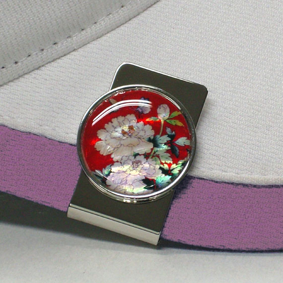 高爾夫球帽夾 / 錢夾 - 貝母手工紅牡丹花